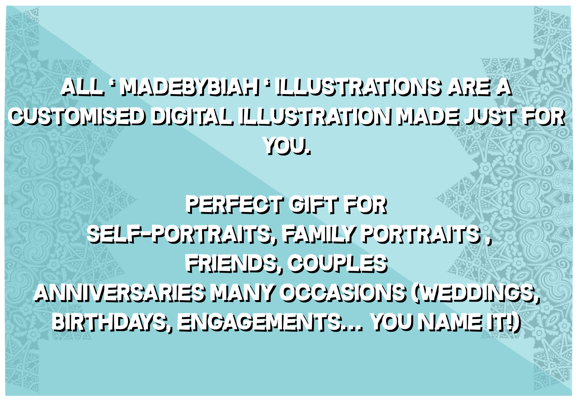 All ‘ MadeByBiah illustrations’ are a customised digital illustration made just for you.
